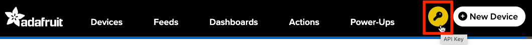 Your Adafruit IO Key is used to restrict or grant access to your data. The key is unique and covers every use of the Adafruit IO API for your account. You can access your key on any IO page by clicking on the golden key icon: