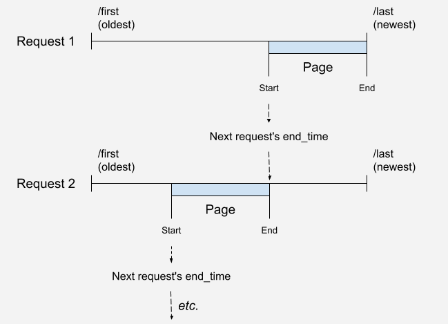 X-Pagination-Start) is an ISO-8601 formatted date value based on thestart_timeparameter in the original request, if one was given. - End (